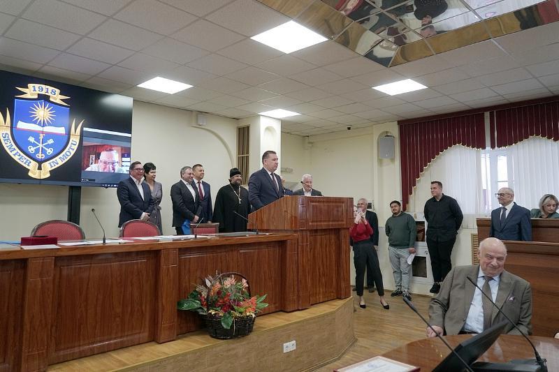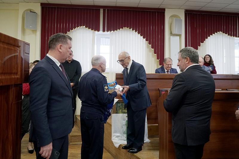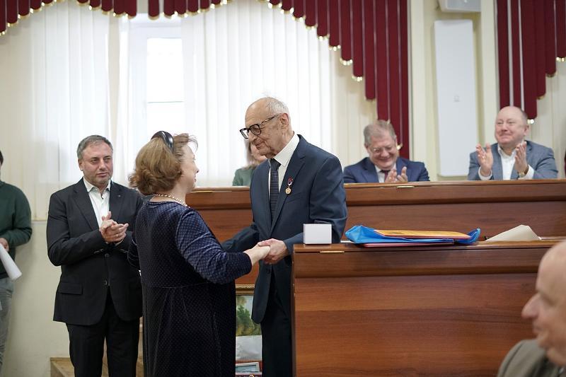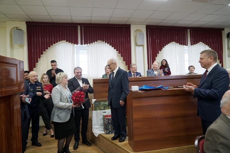 VSU staff, rectors of Voronezh universities, art historian Bronislav Tabachnikov, and head of the registry office Marina Severgina came to congratulate Vladimir Listengarten. Marina Sternina, DSc in Philology, gave him a prize from the Sternins’ Fund. The representatives of the Federation of Independent Trade Unions of Russia awarded Vladimir Listengarten with the “For community” award pin.