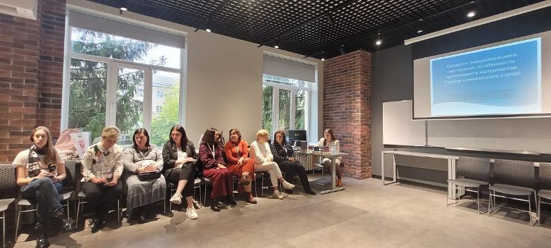 The conference was attended by more than 20 students and master’s students specialising in Psychology and Psychological and Pedagogical Education, members of the Department of Pedagogy and Pedagogical Psychology Olga Mazkina, Marina Larskikh, and Lyubov Kovtunenko, as well as Olga Ivanova, Vice-Dean of the Faculty of Philosophy and Psychology. Olga Ivanova chaired the masterclass held on the first day of the conference. She presented a theoretical analysis of maternal burnout and a clinical case study on the topic.