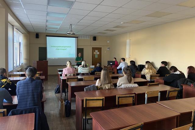 In October, an employee of the eco-centre “Sedmoy Lepestok” and the founder of the environmental movement “EcoDvor”, Ekaterina Khomich, gave a lecture on the separate waste collection system. She presented scientific literature and guide books on recycling. She talked about the main rules of separate waste collection and showed some products made of recycled materials.