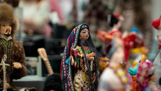 The “Around the world” collection includes more than 100 items made of stone, ceramics, porcelain, glazed pottery, wood, plastic, metal, leather, fabric, and fur. Most items at the exhibition are dolls wearing national costumes and appropriate accessories. Each element reflects national identity and represents culture and spirit of a certain country.