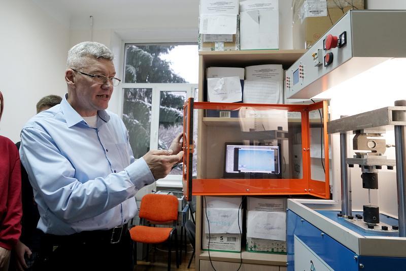 The installation is a system with attached laptop. The equipment allows carrying out statistical tests on the tension or compression of materials and display a graph of processes on the screen. According to Alexeн Kovalev, head of the Department of Mechanics and Computer Modelling, the machine will facilitate the work of students who will be able to observe changes in materials in real time.