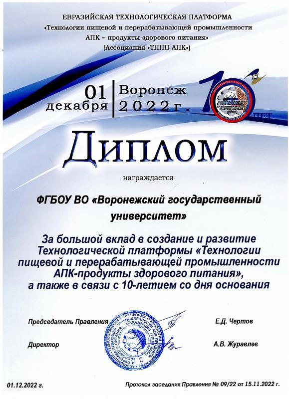On 1 December, Oleg Kozaderov, Vice-Rector for Research, Innovations, and Digitising, Vladislav Kalaev, Deputy Dean for Research at the Faculty of Biomedical Sciences, and Daria Paymetieva and Matvey Skorobogatov, students of the Department of Biophysics and Biotechnology of the Faculty of Biomedical Sciences, took part in the 11th Agro-Industrial Congress. The congress was dedicated to the 10th anniversary of the Eurasian technological platform “Technologies for the Food and Processing Industry of AIC – Healthy Food”.