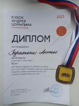 On 10 March, the 26th international tournament “Andrei Shumilin's Cup” in free-style wrestling took place in Kaliningrad. Anton Pushechkin, a second-year student from the Faculty of Mathematics of Voronezh State University, took third place in the 92 kg weight category. He is coached by Alexander Belanov, Head of the Department of Physical Education and Sports of Voronezh State University and Master of Sports of the USSR.