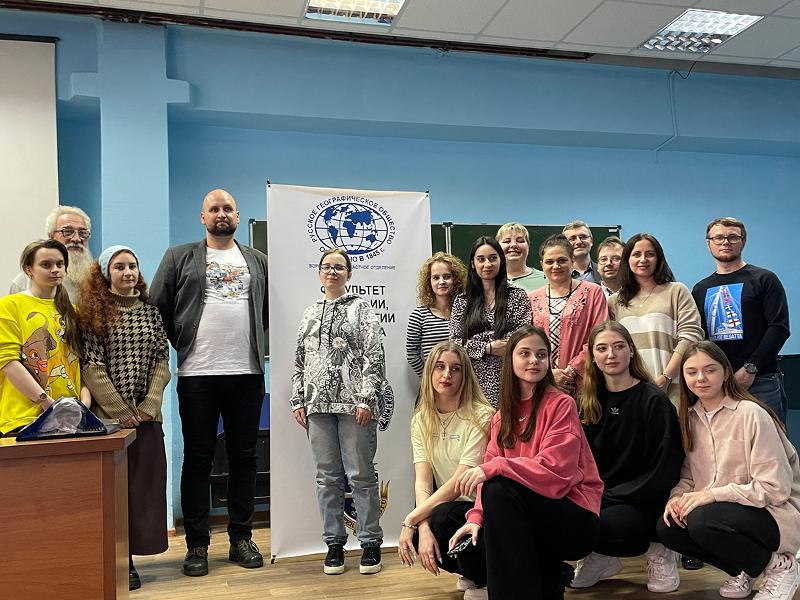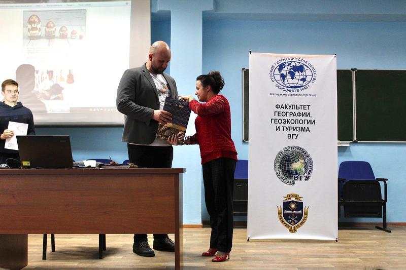 The event was organized by faculty teachers: Vadim Sviridov, secretary of the Voronezh regional branch of the Russian Geographical Society, and Svetlana Shcherbinina, head of the "People and Countries" club. They awarded the guest with letter of acknowledgement and souvenirs. The result of the meeting was Mikhail Glushchenko's statement about his desire to become a member of the Russian Geographical Society, the oldest public organization in Russia, one of the main tasks of which is the organization of practical field research and expeditions to different parts of Russia and the world.