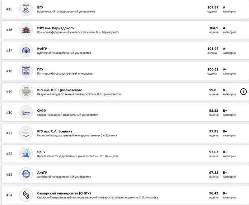 On 17 April, Tabiturient.ru published the 2023 Ranking of Classical Universities in Russia. VSU took 15th place in the ranking. The ranking includes 93 universities, which were assessed based on 9 parameters.