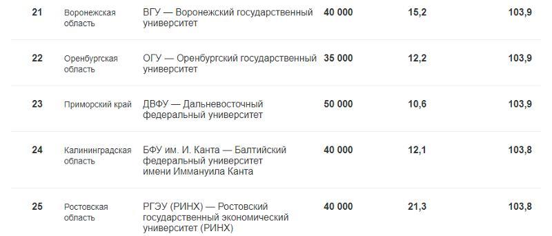 The final score was also made up of the level of the university’s popularity in the region, its graduates’ work experience, and their current employment.