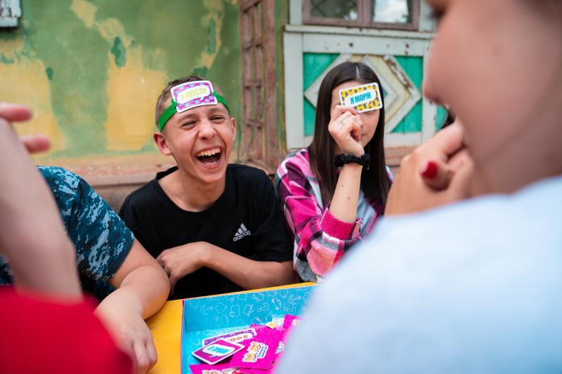At the next stage, the children were divided into different age groups. Creative and athletic contests were held for those aged 7–12. Employees of Hobby Games brought some board games and played with teenagers.