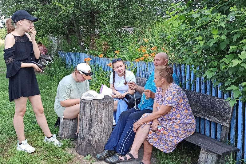 Russkaya Builovka was the first village visited by the students. Here they met new people, learned about the life of the village during previous centuries, talked a lot to the elderly, learned about ancient customs, sang songs, and tried on folk costumes.