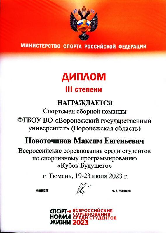 Despite the fact that the most experienced team of the Faculty of Computer Sciences was shorthanded, Nikita Berezhnov and Maxim Novotochinov were able to win bronze medals. For them, these were their fourth medals at the competitions held by the Federation of Sports Programming of Russia. They had won the other medals at the national and international competitions in Voronezh and Grozny.