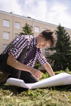 As part of his thesis, Yulian Postavnichev-Harry, a student from the Department of Physical Geography and Landscape Optimisation, designed a renovation project for the university's park. According to Yulian’s idea, the renovated area should include a stadium with a sports ground, comfortable benches, and memorial and walking areas.