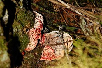 “Among the detected fungal taxons, the most common species were wood-destroying fungi, as well as pileated representatives of mycobiota. One of the most amazing mushrooms of Karelia was Hydnellum peckii, commonly known as “the bloody tooth”. A typical feature of this mushroom is bright drops on the fruit body, formed as a result of guttation when it releases excess water after warm and humid weather during the active growth of the basidioma. Representatives of the clavariaceae family of fungi (Calocera adhesive, Ramaria abietina) were also discovered. They have a coral-like shape, and their fruit bodies are brightly coloured. Among the edible mushrooms there were different types of boletus, birch boletus, as well as their “evil twin”, bitter boletus, which causes poisoning if eaten,” said Gavriil Melkumov.