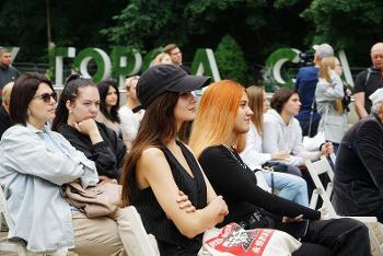 The guests of the festival could take photos in a special photo area - a frame decorated with Latin letters. There was also a leisure area with a large collection of books provided by Ekaterina Khomich, the founder of the Green House ecocentre. There was also special lighting in the night, which made the exhibit especially nice and cosy.