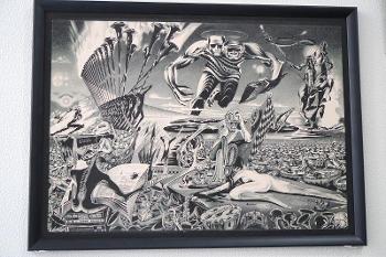 As an artist Anatoly Fomenko was influenced by many painters including Bosch, Bruegel, Dali, Escher, Böcklin, and Dürer. He became interested in drawing and painting, when he studied at university. He was them struggling with topology, the science that made him an internationally recognised expert. To understand abstract formulas, Anatoly Fomenko started drawing them. This is how he became a co-author of a study guide “Homotopic Topology” which includes a lot of his drawings. The study guide became very popular with mathematicians. In 1990, the American Mathematical Society published a book Mathematical Impressions with 84 paintings by Anatoly Fomenko. Anatoly Fomenko’s art was also praised by Vladimir Tarasov, a director at Soyuzmultfilm animation studio. An animated film “The Pass” written by Kir Bulychov was based on his drawings.