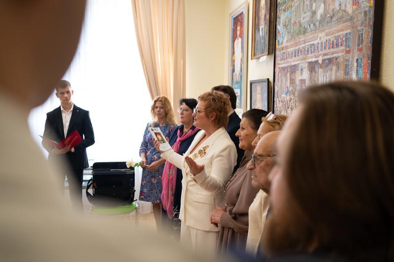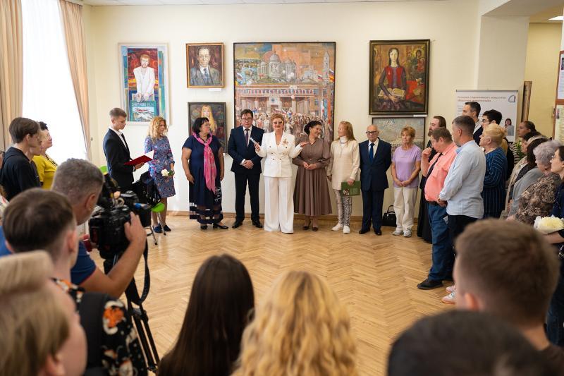 Dmitry Endovitsky noted that the painting “Link of centuries” has a special meaning for him as it portrays the main building of VSU. In the middle of the painting we can see the former rector of the university, Vladimir Gusev, surrounded by students, and the outline of the Mitrofanovsky Monastery rising behind them. This, according to the rector, is especially symbolic.