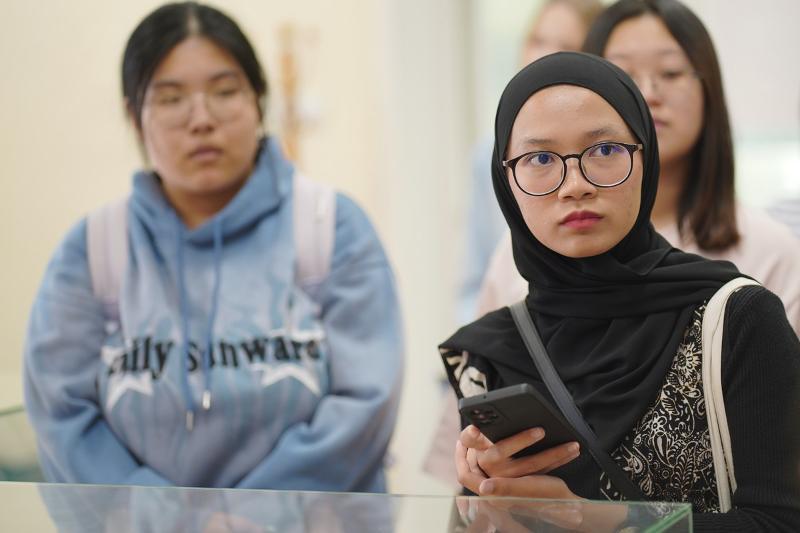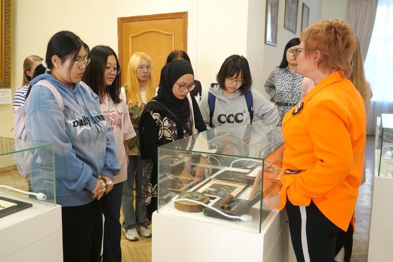 Angelika Makarova, the main guardian of the VSU History Museum, showed the museum collection to international students. At the end of the meeting, the students received branded VSU souvenirs.