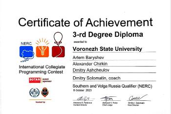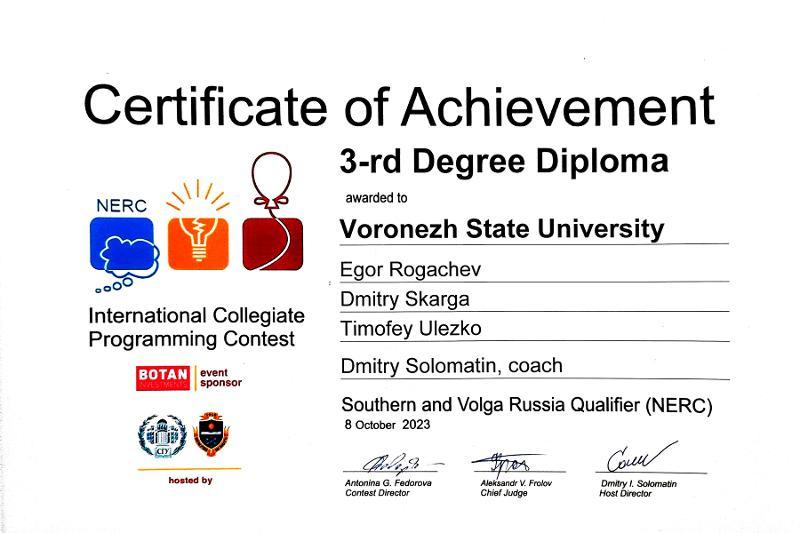 As a result of the competition, six teams from the VSU Faculty of Computer Science were awarded with third degree diplomas.