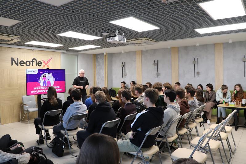 Leading expert and head of the BDS analytics group Tatyana Polovinkina told students about the Neoflex company and held an entertaining IT quiz for them with memorable prizes.