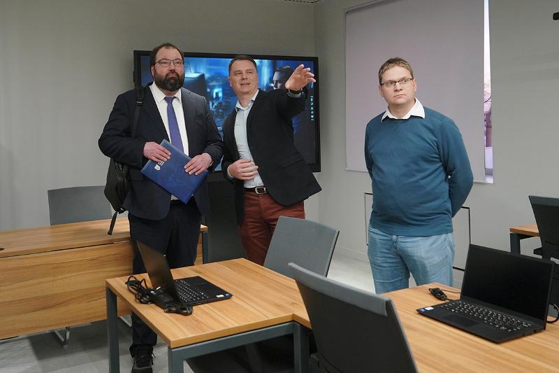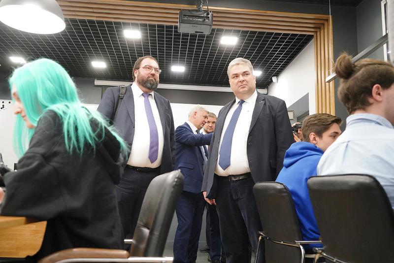 During his visit to Voronezh State University, Maksut Shadaev, the Minister of Digital Development, Communications, and Mass Media of the Russian Federation, visited the computer graphics laboratory in room No. 293, and the Severstal-Infocom training centre in room No. 297, where he learnt about technical developments of VSU students.