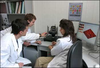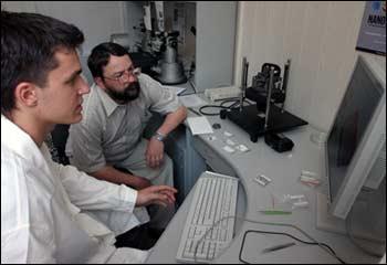 Первыми с работой нового микроскопа познакомились проректор по научной работе Ховив А.М. и его заместитель Вашанов Г.А.