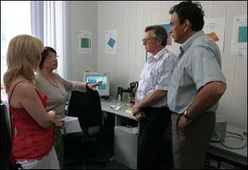 Зав. лаб. "Наноскопии и нанотехнологий" Битюцкая Л.А. знакомит с новыми возможностями лаборатории гостей и сотрудников ВГУ проф., зав.отд. ИОНХ им. Курнакова РАН Маренкина С.Ф., ст.н.с. хим.ф-та Логачеву В.А., проф. ВГПУ Афонина Н.Н.