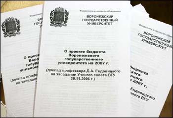 Состоялось очередное заседание Ученого совета университета. На нем (по докладу проф. Д.А. Ендовицкого) принят в первом чтении бюджет Воронежского государственного университета на 2007 год.