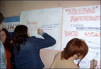 «Данный проект предполагает проведение обучающей игры в каждом представленном сегодня регионе, - рассказывает руководитель проекта Р.В. Савенков, - созданная воронежскими студентами методика обучающей игры легко адаптируется к региональным особенностям избирательного законодательства и специфике молодежных общественных организаций. Будем надеется, что семинар в Воронеже поможет молодым россиянам научиться защищать свои интересы только через законные формы общественной активности».