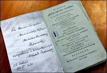 На выставке представлена книга Е. Болховитинова "Историческое, географическое и экономическое описание Воронежской губернии: (1800)", изданная в первые годы существования типографии.