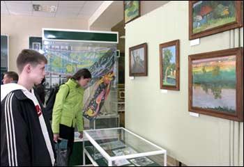 Архив / Просмотров: 1853В Музее истории ВГУ открылась выставка работ Натальи Дуленковой - живопись, графика, батик (роспись по шелку).