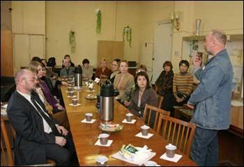 Собравшиеся смогли также увидеть "вживую" одну из самых известных работ кисти Щеглова - "Солнечный батюшка", замечательный портрет священника отца Георгия из города Торопец.