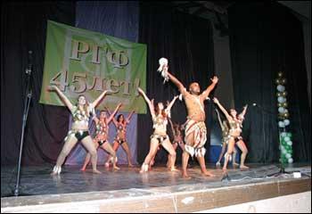 В течение всего вечера не смолкали поздравления в адрес факультета, прозвучала масса приятных пожеланий. Праздничный концерт, прошедший под общей тематикой "танцы со звездами", был насыщенным и разнообразным. Преподаватели и выпускники факультета демонстрировали свои танцевальные таланты под бурные аплодисменты. Восторг зрительного зала вызвали танго "Ночь в Испании", "Баварский танец", "Украинский танец", французский танец "Мужчина и женщина", а также хор преподавателей, шуточные миниатюры, танцы студентов, миниатюра студии "Виражи" в составе выпускников РГФ, которая приносила призовые места факультету в "Веснах" в 70-80 гг.