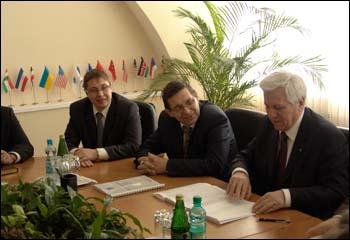 Делегация Воронежского госуниверситета (ректор Титов В.Т., проректор Ендовицкий Д.А., зав. кафедрой МЭиВД Лылов А.И.) посетила ОАО "Минудобрения" (г. Россошь).