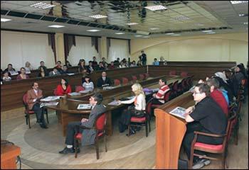 Затем слово было предоставлено Олегу Гришаеву, проректору по воспитательной работе и Елене Ищенко, которая является проректором по учебной работе.
