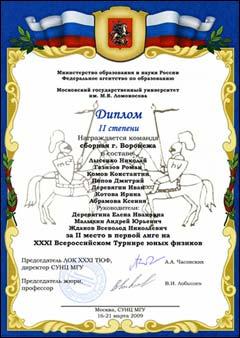 По итогам всех игр юные воронежцы уехали домой с серебряной медалью. Мы от души поздравляем ребят с победой и желаем дальнейших успехов в учебе и скорейшего поступления в ВГУ, а также приглашаем к участию в Третьем региональном турнире юных физиков, который состоится на базе ВГУ в ноябре-декабре 2009 года.