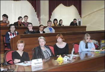 Гостями круглого стола были: начальник отдела Центра занятости населения "Молодежная" Шевлякова Любовь Дмитриевна, руководитель проекта "сайт job.ru" Прилепская Ирина Викторовна, представитель администрации ВГУ Кораблина Светлана Павловна.
