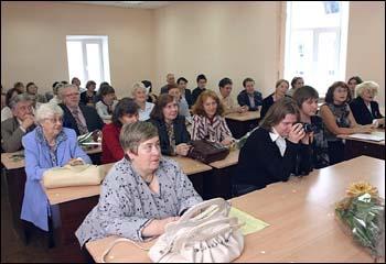Разумеется, многочисленные ученики и коллеги - более 100 человек - пришли поздравить учителя на торжественное заседание ученого совета филологического факультета.