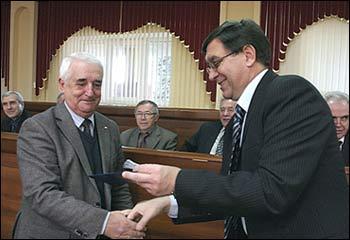Состоялось плановое заседание Ученого совета университета. В самом начале его работы ректор Владимир Титов вручил удостоверение и знак «Почетный работник ВГУ» декану факультета компьютерных наук, профессору Эдуарду Алгазинову.