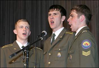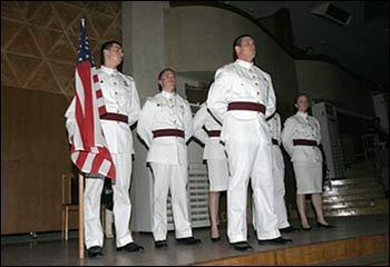 Открыло мероприятие приветствие команды Военной академии Вест-Пойнта, США. Кадеты продемонстрировали собравшимся прекрасное знание русского языка, великолепный юмор, а также приветствовали российских солдат торжественным шествием.