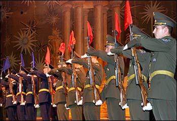 Ответным выступлением стало праздничное шествие воронежской роты почетного караула.