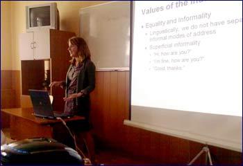 Начал работу Американский Центр ВГУ. С презентацией на тему «Американские ценности с американской точки зрения» выступила стипендиат программы Фулбрайт Молли Перкинс.