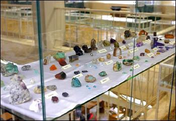 На выставке минералов из личных коллекций В.Г. Гадиятова, В.А. Ежова, Ю.Б. Комиссарова представлены различные минералы из разных регионов России (Дальний Восток, Якутия, Карелия, Урал), Казахстана, Таджикистана, Туркмении, с о-ва Мадагаскар, а также изделия из них.