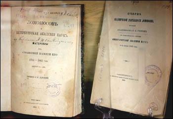 Вторая выставка – «Я знак бессмертия себе воздвигнул…» представляет труды ряда авторов, изучавших жизнь и творчество М.В. Ломоносова в XIX – нач. ХХ веков. Среди них работы К. Полевого, В. Ламанского, Я. Грота и др. Выставка экспонируется в помещении одела редких книг ЗНБ ВГУ в 3-м учебном корпусе (пр. Революции, 24).