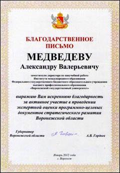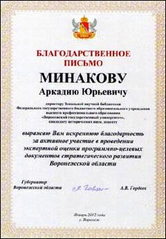 Ряд сотрудников ВГУ награжден благодарственными письмами губернатора Воронежской области Алексея Гордеева.