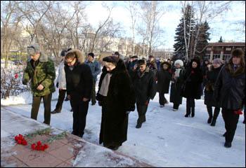 Собравшиеся почтили память павших минутой молчания и возложили цветы к мемориалу.