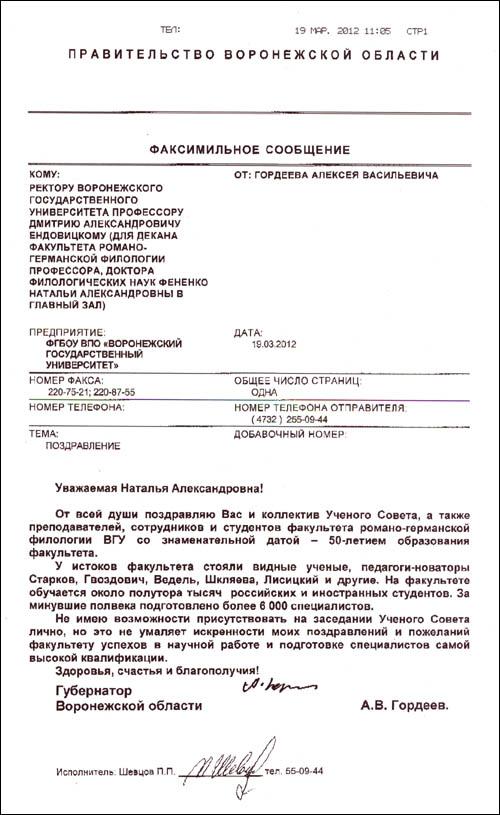 С пятидесятилетним юбилеем факультет РГФ тепло поздравил губернатор Воронежской области Алексей Гордеев.