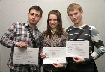 Поздравляем команду третьекурсников (Сергея Бабкина – капитана команды, Дмитрия Заревенко, Вениамина Вифлянцева) и команду первокурсников (Сергея Минаева – капитана команды, Николая Перунова, Анну Скобаневу) с успешным выступлением на важном студенческом мероприятии и желаем им новых побед на новых соревнованиях!