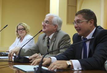 Затем в конференц-зале главного учебного корпуса состоялось заседание администрации и деканов факультетов Воронежского госуниверситета, представителей вузовского сообщества города, которое открыли главы вузов-партнёров. Дмитрий Ендовицкий, приветствуя собравшихся, отметил, что партнёрство университетов, последовательно реализуя идею сохранения культурного и образовательного пространства России в странах СНГ, даёт импульс процессу интеграции приднестровской высшей школы в российскую систему образования. На передовой конфликта идеологий атлантической цивилизации и так называемого русского мира важнейшим "лимфоузлом" является образование, через которое формируется система ценностей населения, особенно молодежи.