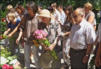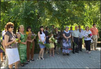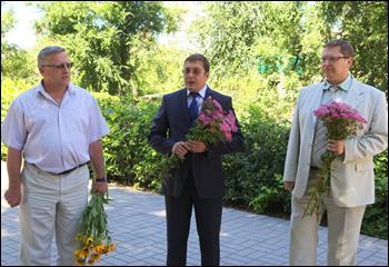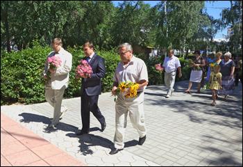 Присутствующие почтили память павших минутой молчания и возложили цветы к памятному знаку.