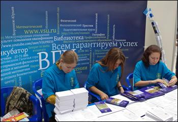 Воронежский государственный университет – постоянный участник этого проекта. Специалисты управления образовательных программ, – довузовского образования, подготовительных курсов, – а также студенческий актив проводили презентации образовательных программ ВГУ, рассказывали посетителям о направлениях подготовки бакалавриата, специальностях университета, магистерских программах, дополнительном образовании, подготовительных курсах. Посетители выставки – абитуриенты, студенты, выпускники учебных учреждений; родители; преподавательский и руководящий составы образовательных учреждений; представители фирм, обеспечивающих образовательный процесс, представители административных образовательных структур.