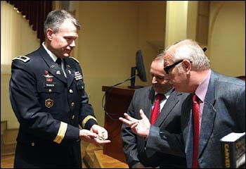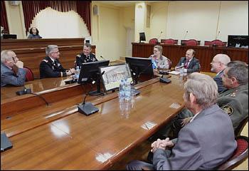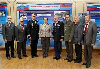 ВГУ посетила делегация Военной Академии США Вест–Пойнт. В конференц–зале главного учебного корпуса ВГУ бригадного генерала, проректора Академии Тимоти Э.Трэйнора и полковника США, начальника Департамента иностранных языков Академии Рикки МакПика встречали проректор по учебной работе Елена Ищенко, проректор по экономике и международному сотрудничеству Олег Беленов, директор Института международного образования ВГУ Владимир Родионов, декан факультета военного образования ВГУ Александр Щербаков, помощник ректора по военному образованию Виктор Шамаев, преподаватель кафедры русского языка для иностранных учащихся основных факультетов Анатолий Леонов.