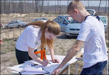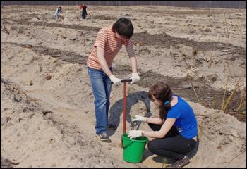 И вот, утром 20 и 21 апреля участники собрались у главного корпуса ВГУ и на специальных автобусах доехали до места посадки. Перед началом высадки перед добровольцами с напутственными словами выступили руководитель Сомовского лесничества В.А. Папонов и помощник руководителя Департамента по лесному хозяйству. Они отметили острую необходимость подобных мероприятий, чтобы как можно быстрее восстановить сгоревшие леса. После официальной части участников проинструктировали опытные лесники: как правильно сделать ямку, как вставить саженец, как закопать (здесь, оказывается, тоже есть особая технология), через какое расстояние можно сажать следующее дерево (70 см). Волонтерам явно не терпелось самим приступить к процессу, потому что самый часто задаваемым вопросом, звучавшим оба дня, был: «Уже можно сажать? Когда начинать?» Сразу после инструктажа к радости добровольцев они приступили к самостоятельной посадке.